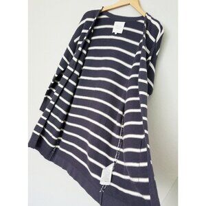 Part Two Striped Longline Tunic Cardigan M Cotton Blend One Hook Eye Preppy Knit