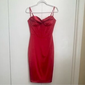 ❤️Parthea Boning Push Up Padded Corset Satin Red Dress