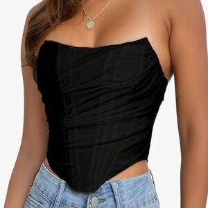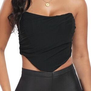 Parthea black pointed mesh ruffle structured boned corset cropped top