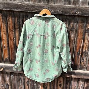 Vintage Partners green button-up shirt with floral pattern. Perfect for casual wear. 100% cotton.