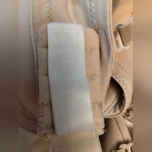 I don't believe I wore this much so I don't know why the tag was so faded. Straps are completely removable so there are many ways to wear this. Lightly padded and stretchy.