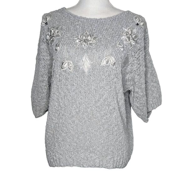 Partners Mervyn's Sweater women's medium gray knit Chunky cottagecore beaded