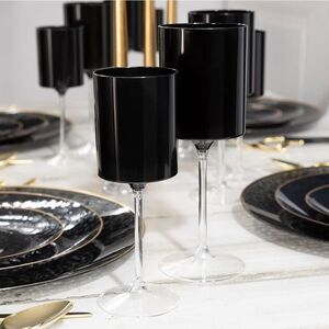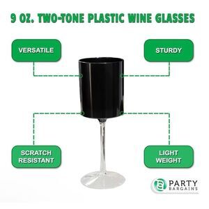 Party Bargains Plastic Wine Glasses Goblets Set of 18 Two Tone Black Clear 9 Ounces New