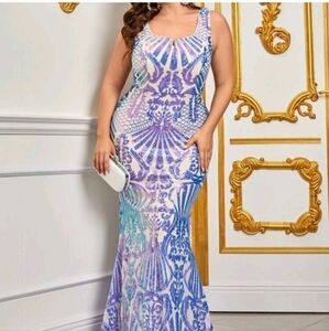 Party Baroque Sequined Sleeveless Mermaid Special Event Maxi Dress