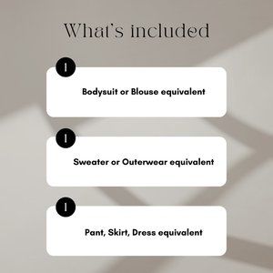 Get ready to elevate your style game with our captivating aesthetic mystery boxes! Dive into the thrill of discovering new and like-new treasures carefully curated from the latest and past season collections of local boutiques. Each box has a delightful mix of samples in impeccable like-new condition and/or brand-new, unpacked clothing!