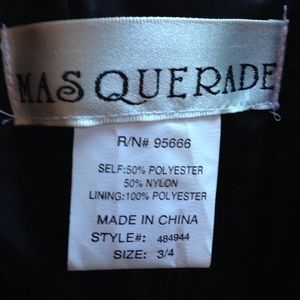 A polyester party dress with black roses and black nylon at the bottom