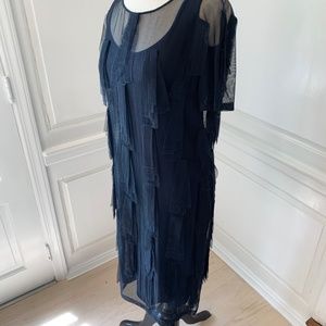 Navy stretch slip dress with navy mesh overdress. Great party dress, great for dancing!