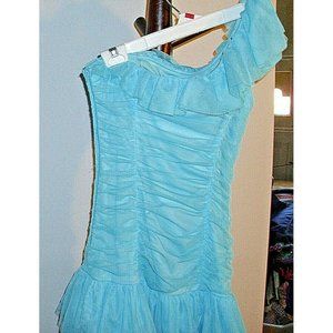 Party Dress by Josh & Jazz Lgt Blue Ruffles One Shoulder Strap Short Size 3/4