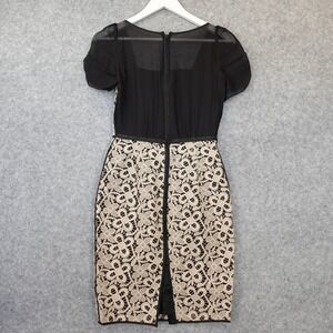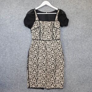 Party Goddess HOSS INTROPIA Stone Silk Dress 34 XS Black Beige Lace Mini NEW$450