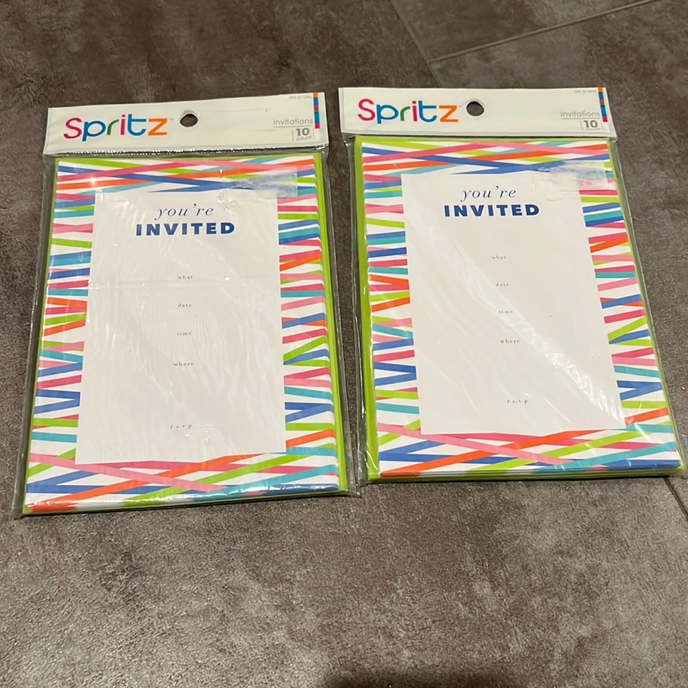 2 packs of 10 invitations and envelopes each.
