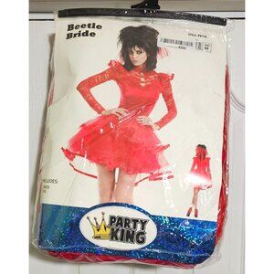 Party King Beetle Bride Costume Red Wedding Dress Wig Veil Beetlejuice Lydia MD