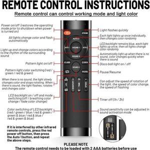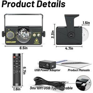 🧿Remote control and memory functions 📱 When the party disco light is enabled, it will automatically restore the working mode before shutting down. The disco party light comes with a remote control, you can freely turn on/off any lens light, change the lighting mode, speed, sensitivity, the party light also has an automatic off timer, you can set it to turn off after 1 or 3 hours.