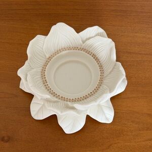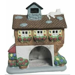 This cute little flower home with a cat relaxing on the roof is bound to light up your already beautiful home. There are minor shows of wear but no cracks, breaks or chips.