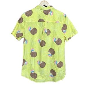 Party Pants Weekender Short Sleeve Button-Down Yellow Shirt Coconut Print Size Medium