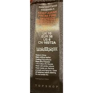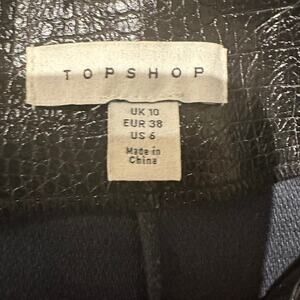 Get ready to turn heads with this Topshop faux leather mini skirt! Perfect for parties, raves, or adding a touch of edgy style to your capsule wardrobe. This skirt is a size 6 and features a sleek, figure-flattering design.