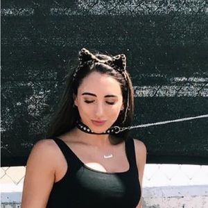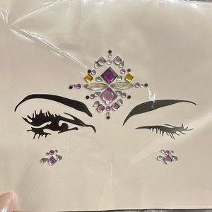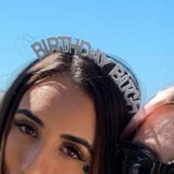Devil horns, playboy bunny ears, birthday bitch headband, necklaces, bracelets, and face jewels