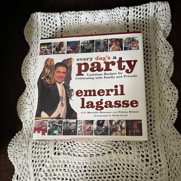 Celebrate with 's party recipe book. Enjoy Louisiana recipes with a vibrant red and white cover. Perfect for family gatherings.