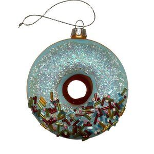 Party Rock Blue Iced Donut Glass Ornament - Glitter & Sprinkles