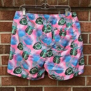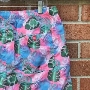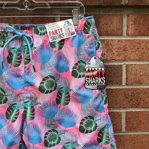 Party Sharks Swim Trunks sz Large, NWT, Hawaiian Tropical Print, Watermelon Pink & Blue & Green, Mesh Lined