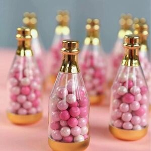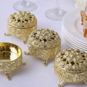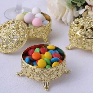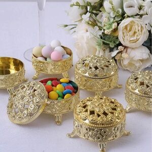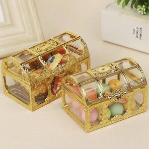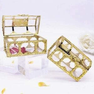 2 Mini Storage Boxes + 5pcs Metallic Hollow Out Gold Plastic Hollow Candy Box For Party + 6pcs Clear Plastic Candy Packaging Bottle