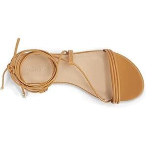 Party Womens Size 6 Tan Strappy Ankle Wrap Lace Up Open Toe Flat Sandal Shoes