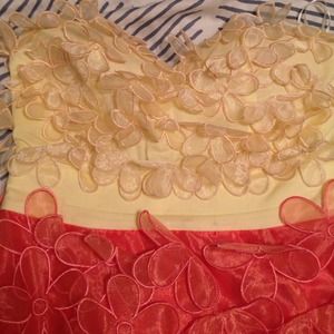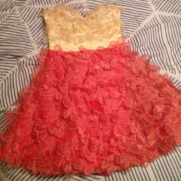 Funniest dress I've ever worn! Wore this for my bridal shower and loves it but now it just can't make it back out with me;) it's on to someone new! Sweetheart neck like and hits above the knees it's in perfect condition