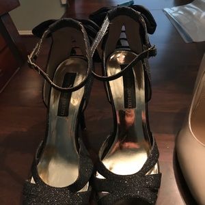 Sparkling with satin bows in the back. Ankle straps