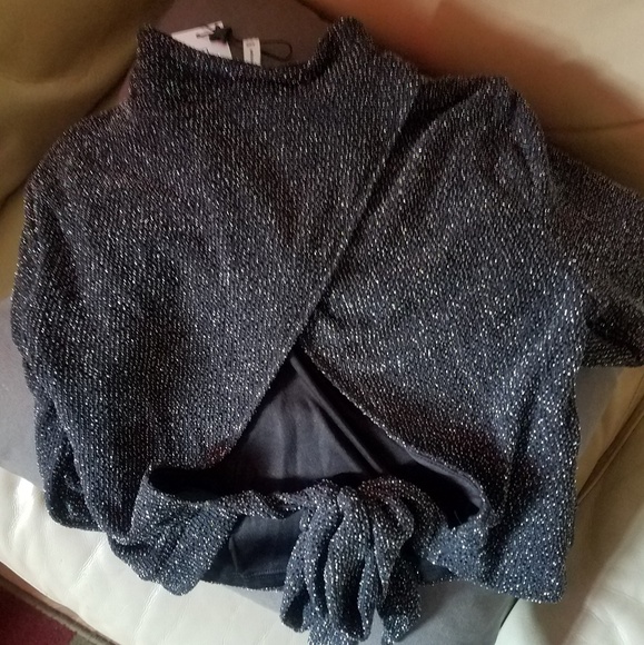 Sleep, glitter, long sleeve. Crop top, open back. Wear with white pants of Jean's and red heels, and ur rockin it 😉