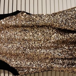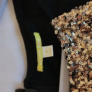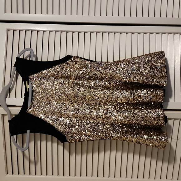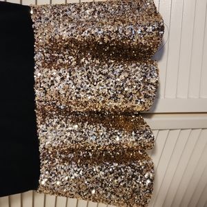 gold sequence and black Gianni Bini party top. like new, all sequence in tact, worn once, fitted with a flare at the bottom