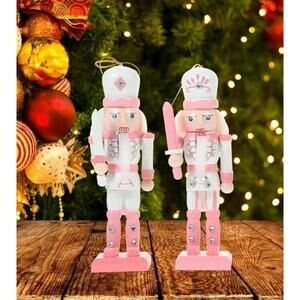 The PartyKindom Pink Nutcracker Ornaments are a set of 4 small wooden Nutcracker figures adorned in a festive pink color, perfect for decorating your Christmas tree. These decorative ornaments feature intricate details and a traditional Nutcracker character design, adding a whimsical touch to your holiday decor. Ideal for collectors or anyone looking to add a unique and charming element to their seasonal decorations.