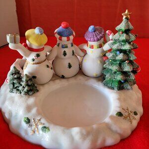 3 Adorable Porcelain Snow Men with Candy Canes and Snowflakes