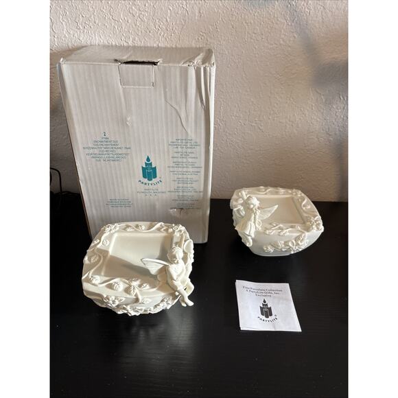 PartyLite Bisque Porcelain Fairy Enchantment Pillar Candle Holders Retired Pair