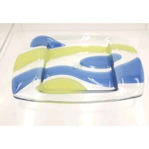 Green leaves, blue stars, yellow butterflies.
