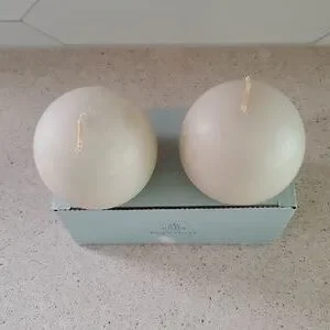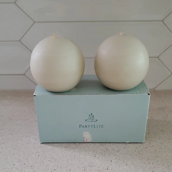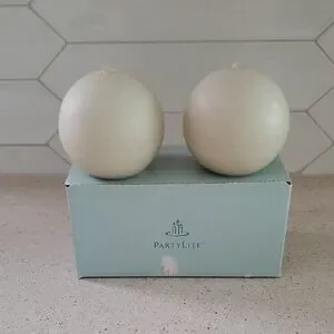Enhance your home with these 2 elegant 3" cream spherical candles from PartyLite. Perfect for creating a warm and inviting atmosphere. Scent: Pear Pleasure