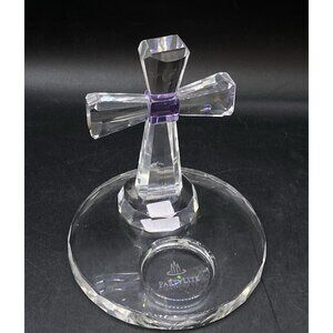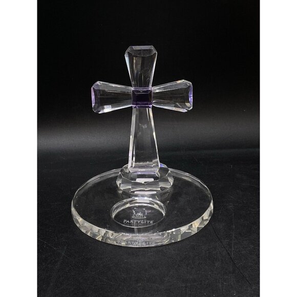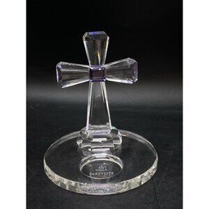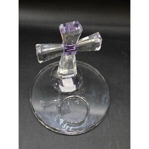 PartyLite Crystal Cross Tealight Clear & Amethyst Purple Candle Holder 5" Retired