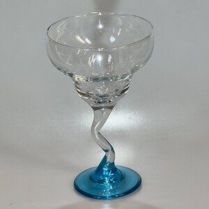 This elegant glass pitcher and margarita glass set is handmade, showcasing vibrant colored bases that add a touch of artistry and charm to any gathering. With a clear design and unique twist stems, it offers both functionality and aesthetic appeal, perfect for serving cold beverages in style.
