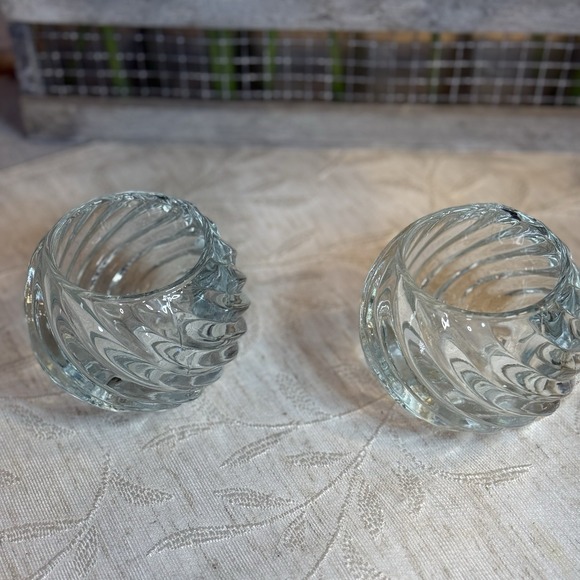 PartyLite Illusions Set of 2 Sturdy Glass Swirled Candle Holders Retired #PO463