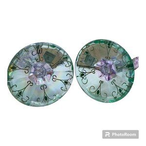 PartyLite "Mardi Gras" Iridescent Glass Jewel Gold Trim Candle Holder - Retired
