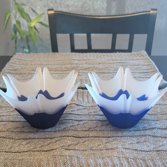 PartyLite Mood Indigo Frosted White & Cobalt Blue Candle Holders.