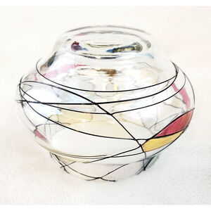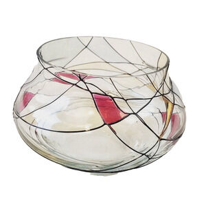 This PartyLite Mosaic Calypso glass candle holder is a must-have for any BOHO enthusiast. With its asymmetrical shape and abstract design, it adds a touch of art to any room and is suitable for all occasions. The holder is small, measuring 2 inches in length and 2 inches in height, making it the perfect size for a single votive candle or tea light. Crafted from clear glass, the holder features a stunning mosaic pattern in red and gold that adds a touch of elegance to the piece. The candle holder is a vintage original and is unboxed. It is ideal for those who love antique decorative collectibles and is perfect for adults who want to add a unique touch to their home decor. Clean the holder with a damp cloth and use it in any room to create a cozy and relaxing atmosphere.