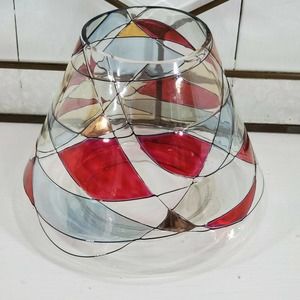PartyLite Mosaic Calypso Jar Glass Candle Shade P8595 Stained Glass 5 x 6.5"Wide