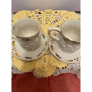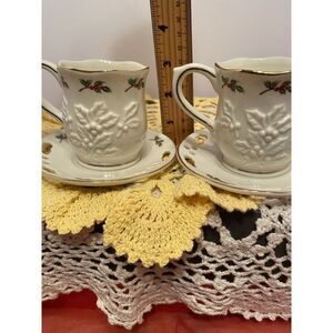 PartyLite P7257 2 Sets Holly Leaf Cup and Saucer Holiday Decor Or Votive Holders
