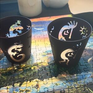 PartyLite Purple Maroon Metal Desert Kokopelli lizard Gecko Candle Holders set