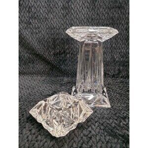 This multifaceted PartyLite Quad Prism pedestal holder is as versatile as it is eye-catching. Crafted from heavy, brilliantly cut 24% lead crystal, it features bold geometric facets that catch and reflect the light beautifully.
