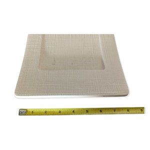 Retired Linen Pillar Candle Holder in a light tan color. There is a small chip on one edge and a spot where something rubbed on it on top, see pictures.
