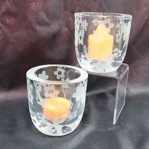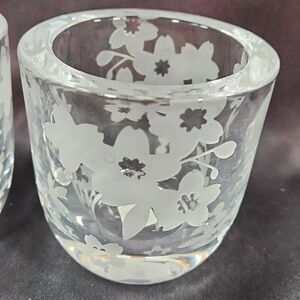 💜PartyLite Sakura Clear Frosted Etch Cherry Blossom Votive Holder Set of 2