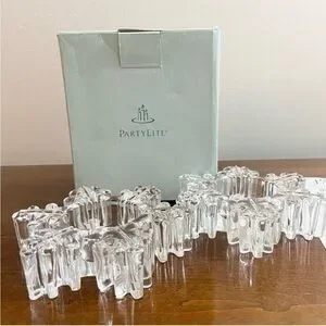 New in Box! Retired PartyLite Snowflake Crystal Tealight Pair