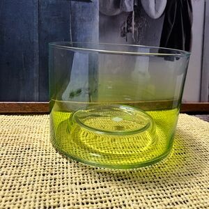 This avocado green glass partylite sent it wax glass holder pedestal Ombré green, mouth-blown.