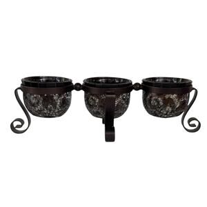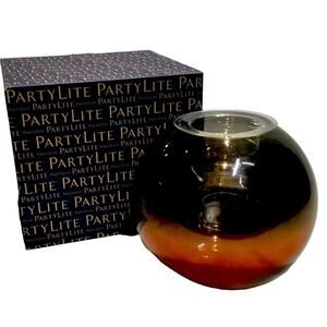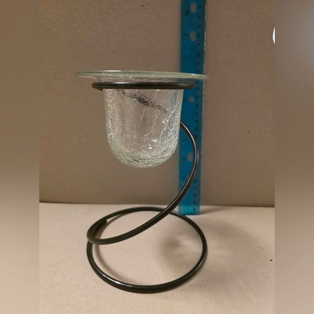 PartyLite Wrought Iron Twist Candle Holder Hand Blown Crackled Glass Votive