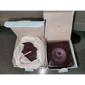 One candle has been lit once, barely used, with plenty of wax remaining in the original box.